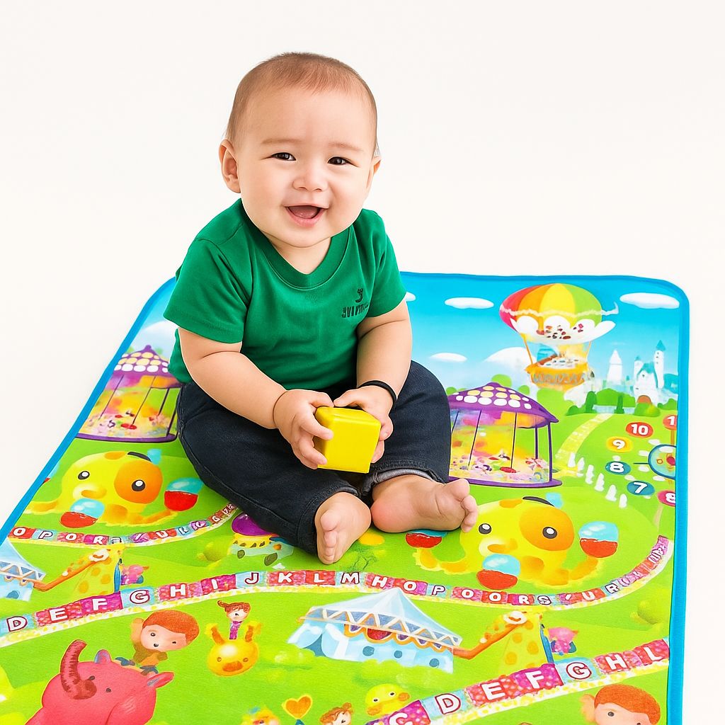 Este tapete é seguro e ideal para acomodar o bebê para praticar os primeiros movimentos. Girar o corpinho, gatinhar e brincar.