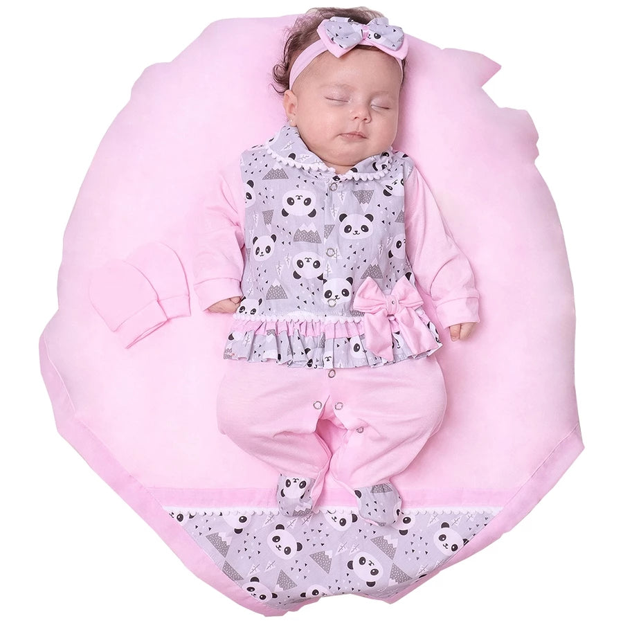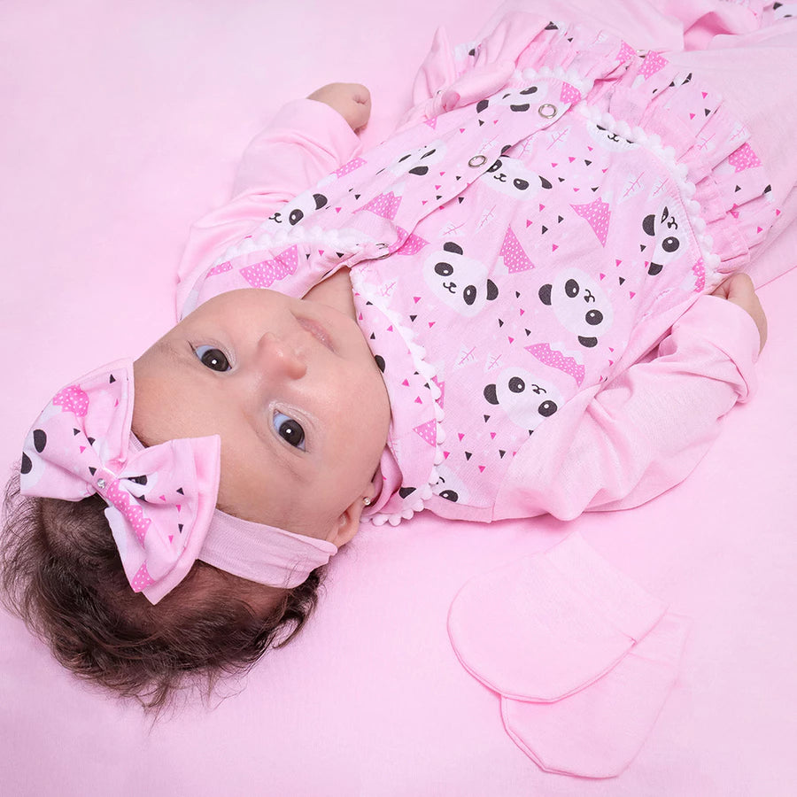 Saída Maternidade Menina Panda Lili – Conjunto 4 Peças Rosa