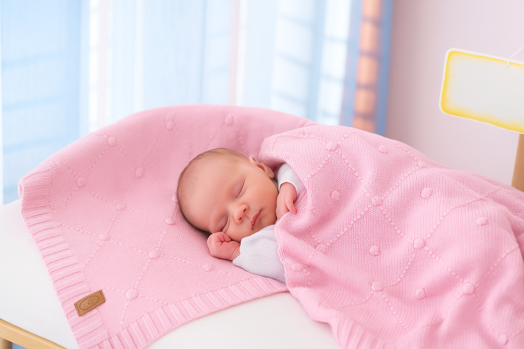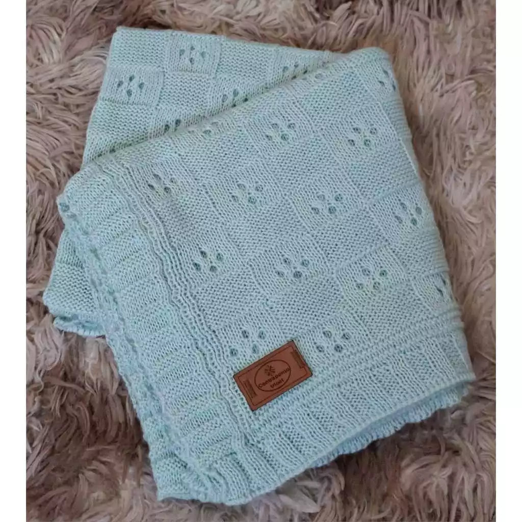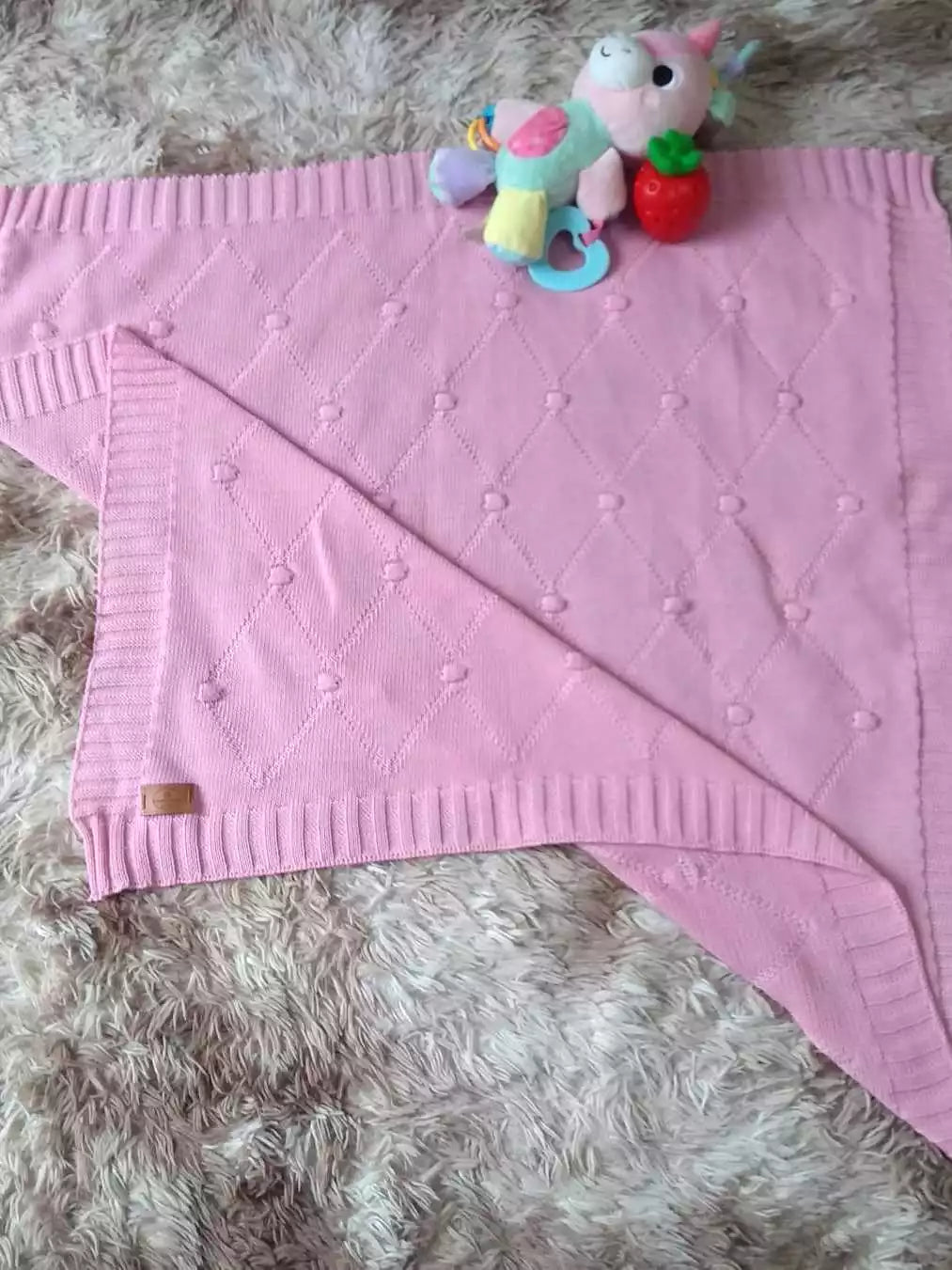 Linda manta em tricot com detalhes de bolinha/pipoquinhas.