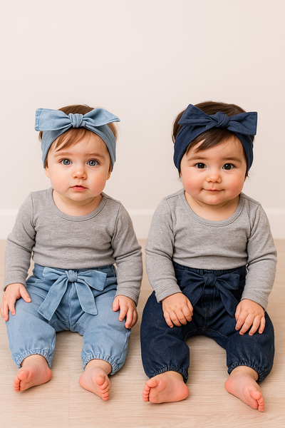 Calça Jeans Menina com faixinha de cabelo