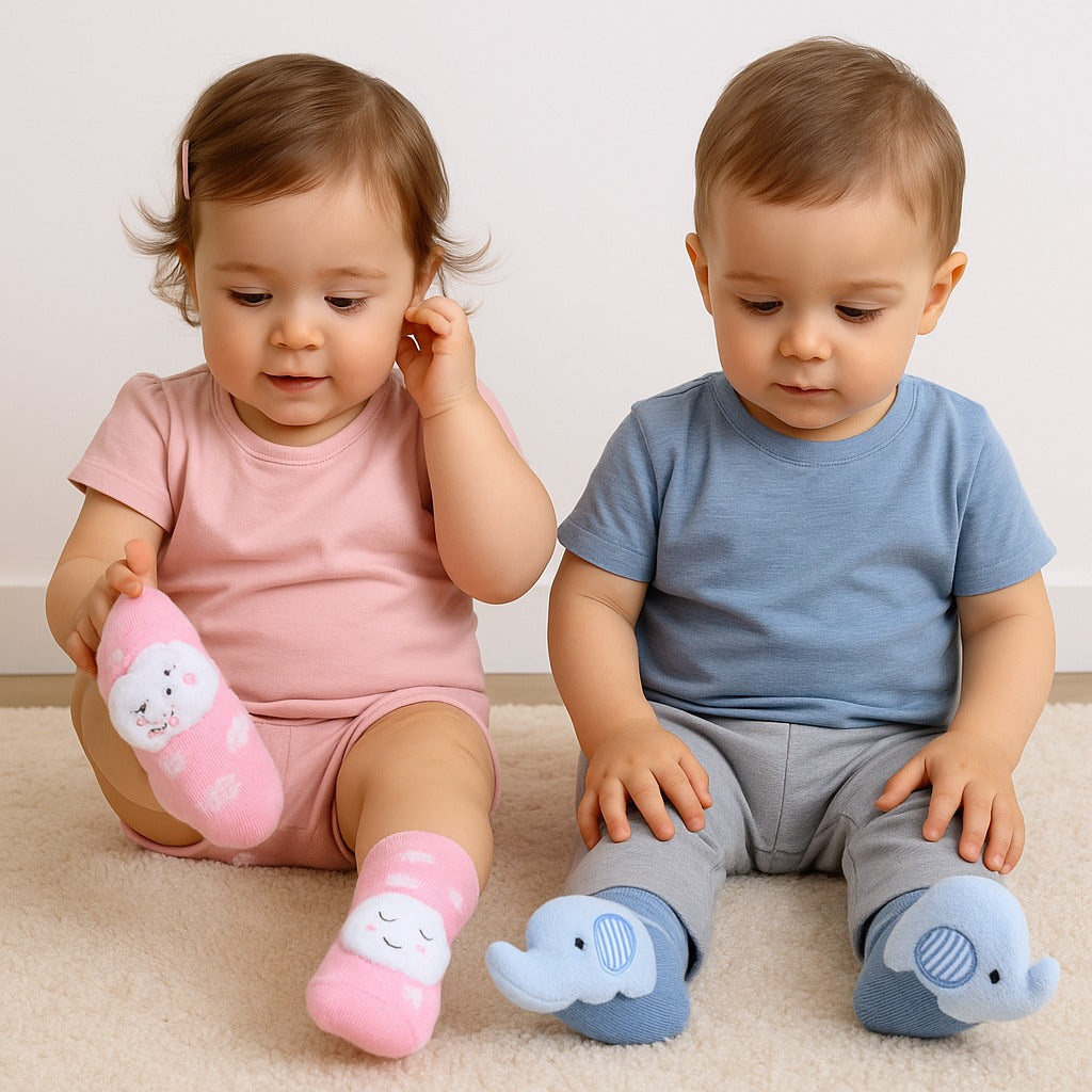 As Meias Infantis com PelĂșcia e Chocalho trazem conforto, diversĂŁo e segurança em cada movimento. đ